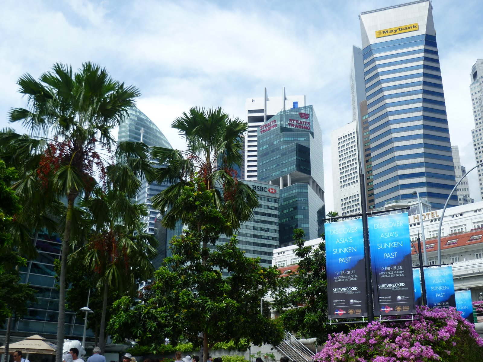 Okolí zátoky Marina bay stojí za rozhled, ulice sou plný květin, všechno eňo ňuňo upravený a vypiplaný. Zaujala mě hlavně stavba Marina Bay Sands, což jsou tři pilíře a na nich ve výšce je položená obří jakoby loď.